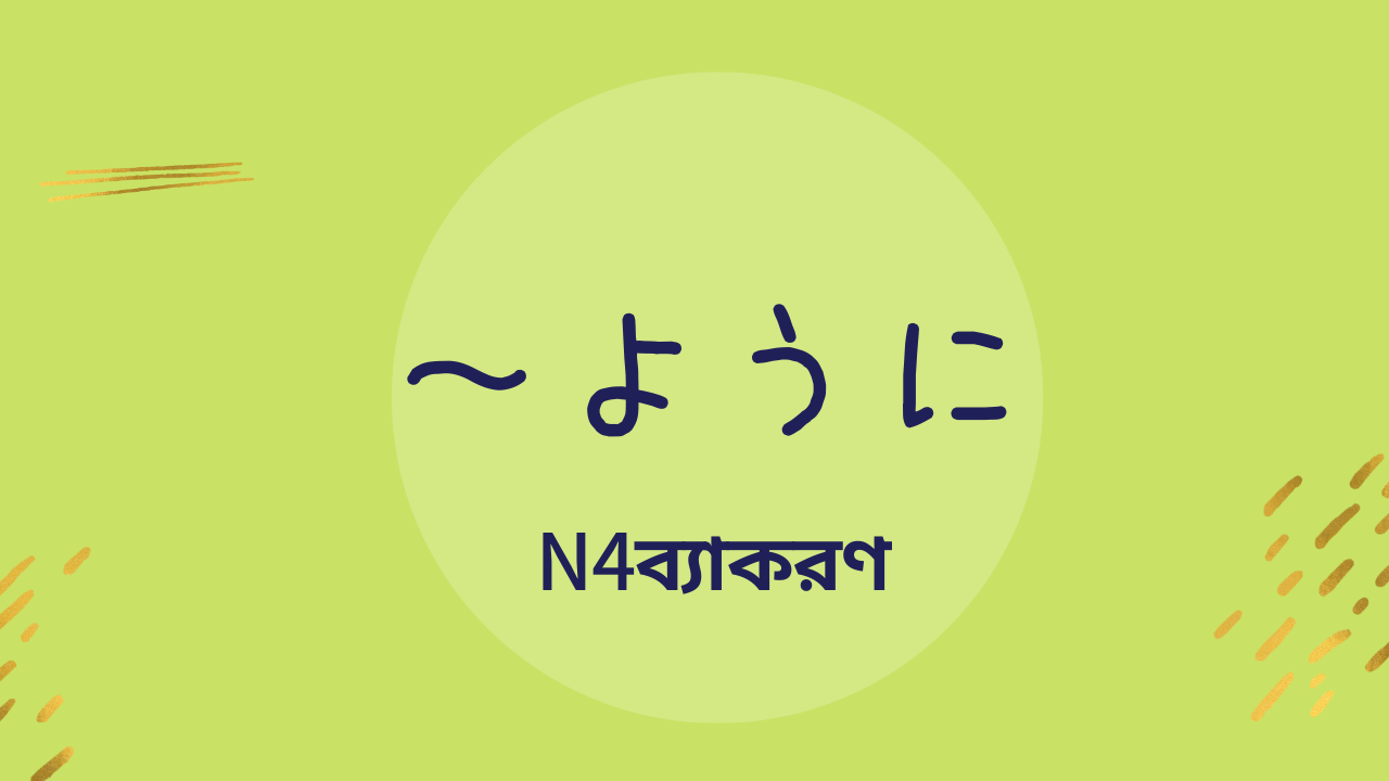 জাপানি ব্যাকরণে “ように” মূলত আপনার আন্তরিক প্রচেষ্টা এবং একটি সুন্দর কাঙ্ক্ষিত অবস্থার মধ্যকার সেতু। এটি নিয়মিত অনুশীলনের মাধ্যমে আপনিও সাবলীলভাবে ব্যবহার করতে পারবেন। সফলতার সাথে আপনার জাপানি ভাষা শিক্ষা এগিয়ে চলুক—এই কামনা করি!