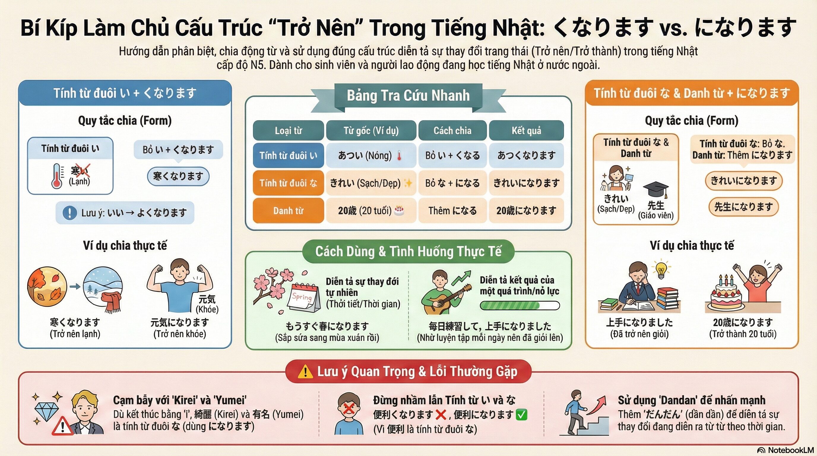 Bí kíp làm chủ cấu trúc “Trở nên, Trở thành”: Phân biệt くなります và になります từ A-Z