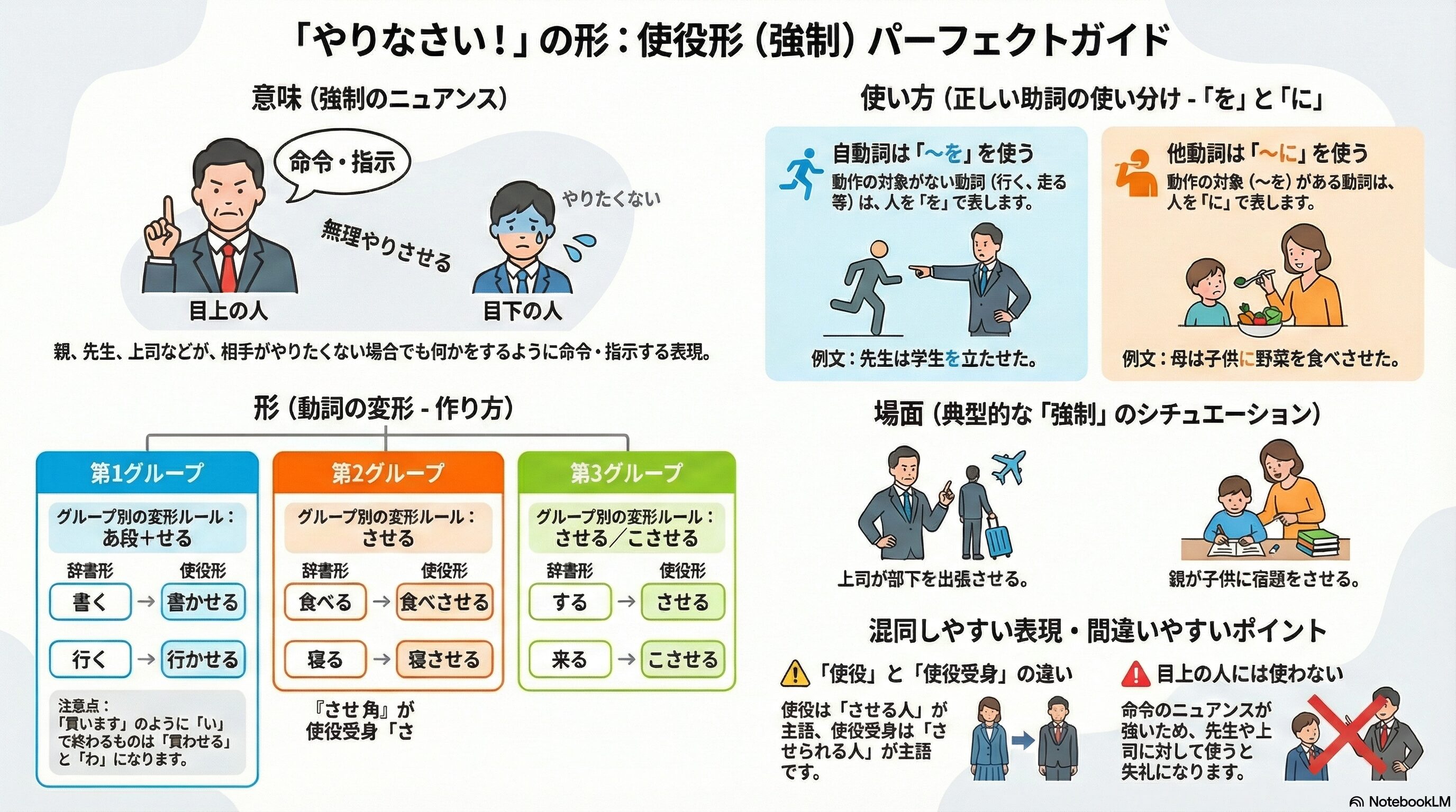 「命令」だけじゃない?日本語の使役形(強制)を完璧に使いこなすための究極ガイド